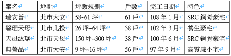 表:家格建設知名經典個案,皆是甫推出造成市場轟動