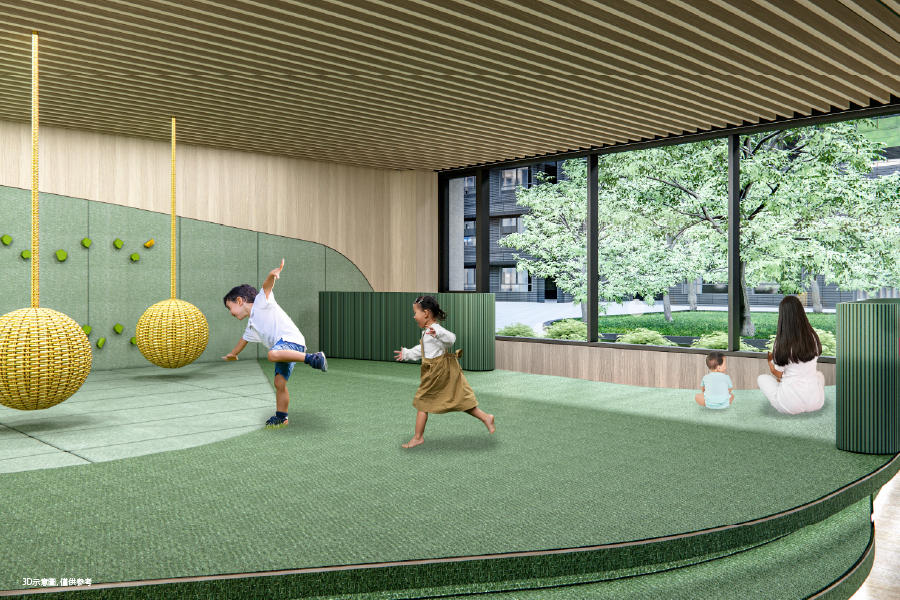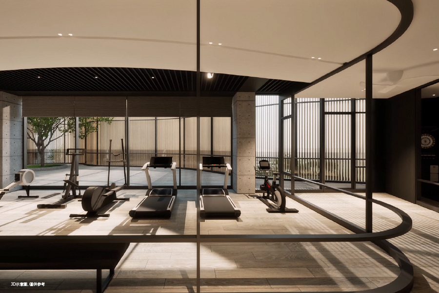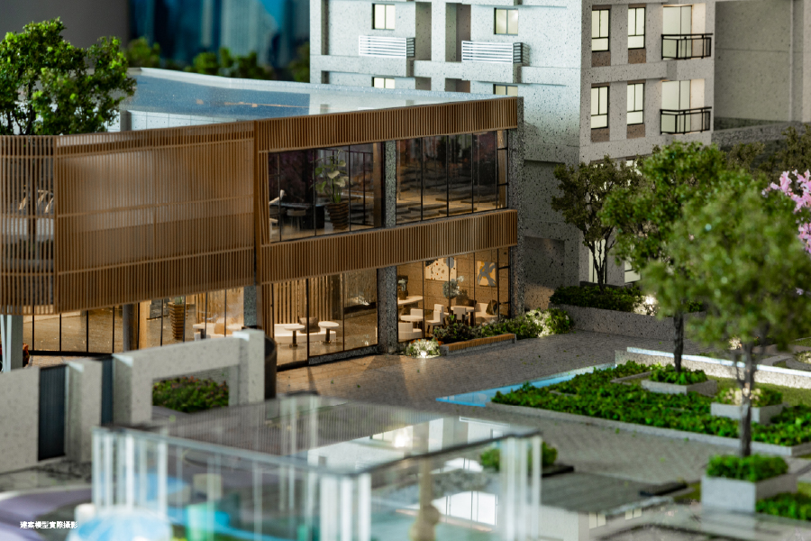 社區設計一大亮點是獨棟休閒會館,與建築主體分離,置身園區綠意之中。一樓可作為咖啡廳、交誼廳使用,二樓配置健身房、視聽室、親子活動空間,滿足跨世代居住